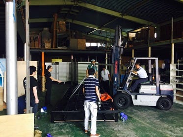 大型の物は社内工場ではなく倉庫をお借りして製作することもあります。