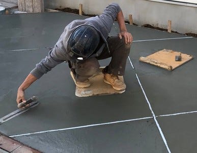 ミキサー車でコンクリートを流し、車庫を作ったりします。
