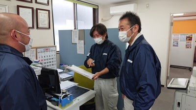 仕様書を確認しながら、先輩が優しく指導