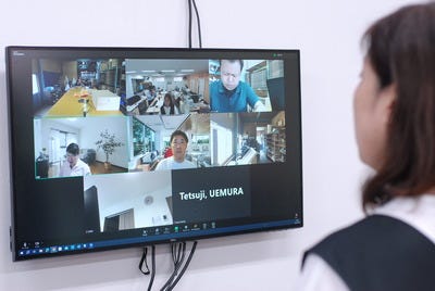 テレワークで働く人や工場と常時繋がっているので、声をかければすぐに会話が出来る環境です。