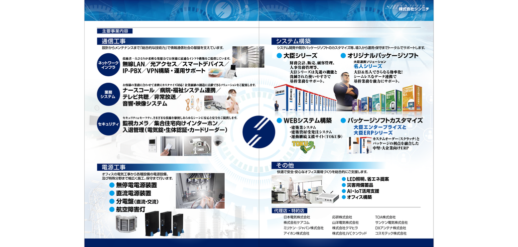 | 事業内容 | 電気通信設備の提案・設計・施工・メンテナンス 情報システムの構築・ソフトウェア開発・カスタマイズ 創業50年、情報・電気通信の両面からお客様をサポート。電気通信設備の建設業務を主とし、地域社会の情報通信ネットワーク整備の一翼を担っています。常に新しい技術の修得・事業展開に取り組んできた当社。大手電力会社・各官公庁から大手民間企業・病院・福祉施設まで幅広い施工実績があります。 若手社員多数。働き方改革・職場環境の改善にも積極的に取り組んでいます。 |
