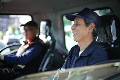 2人1組(運転手・助手)で協力しながら、回収から処理センターへの運搬までを担当します。使用する車両は2~4t車で、主な対応エリアは、川崎市です。