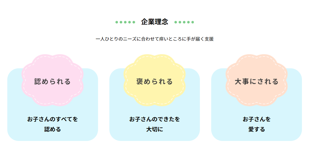 | 事業内容 | 私たちは、放課後等デイサービス「きっずサポート ゆーもぁ・ゆーもぁ+」、フリースクール・アフタースクール「ふりースペース にこはぴ」を運営しています。発達に凸凹のあるお子様や不登校のお子様の居場所として、地域の皆様にご利用いただいています。 お子様がさまざまな体験を通して成長できるよう、ご家族も含めてトータルサポートをしています。 |