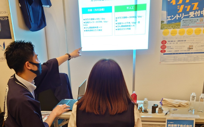 当社は、80年の歴史があります。企業30年説とあるように会社設立から5年以上続く確率は、15%。なんと、30年以上続く確率は、0.021%ほどというデータがございますので弊社がいかに歴史ある希少な会社ということがわかるかと思います。また、化粧品のガラス容器を製造している会社としては国内トップシェアで年間1億3000万本ほど生産しております。日本人ひとり1本弊社の瓶を使用している計算になります。取引先は、誰もが知る国内、海外の大手化粧品メーカーです。世界に認められた技術力をもっております。