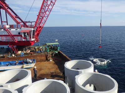 地域の海洋資源(ウニや昆布等)を育てるために必要な魚礁の設置工事、