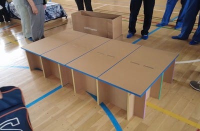 • 登別市の防災訓練では、当社の避難所用強化段ボールベットが