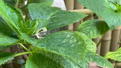 お庭にカエル発見!