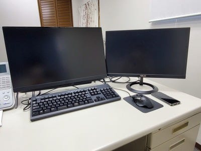 PCのデュアルディスプレイ化。異なるソフト使用時にウィンドウの切り替えを減らすことで、スムーズなデスクワークを実現
