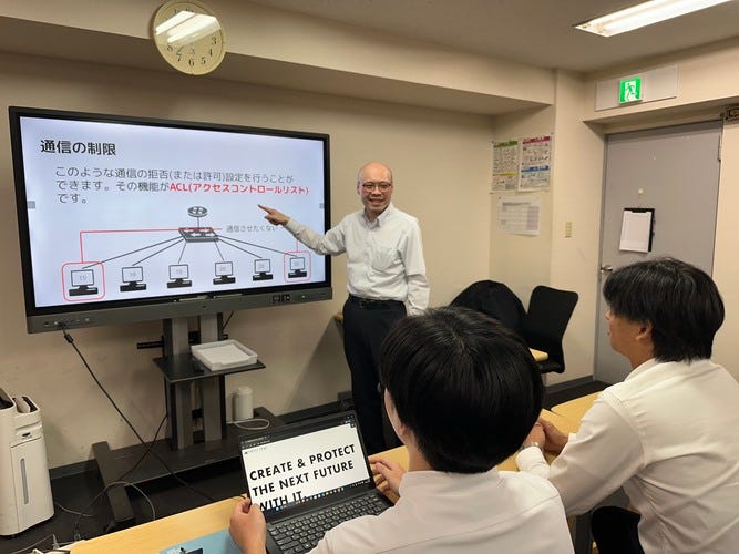 また、技術面ではTCP/IP等のITインフラに必要なネットワークの理解を深めるだけでなく、CentOS(Redhat Enterprise Linux互換OS)を用いたUNIX系OSの操作・管理・構築を行い、幅広いニーズに応えられるエンジニアを育成します。