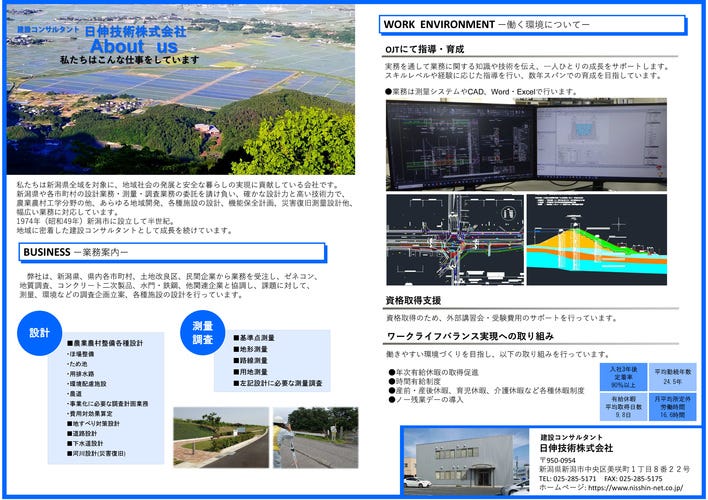 新潟県および各市町村発注業務を請け負う地域密着型の営業を展開しています。