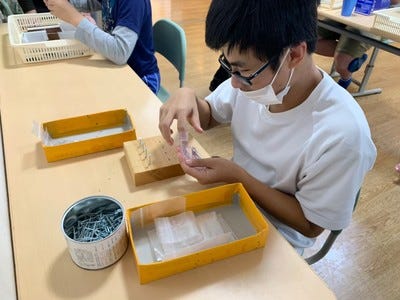 自立課題を作成し、個別に達成感や微細運動、卒業後の就労に向けてなどの目的を持って取り組んでいます