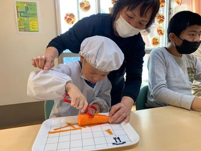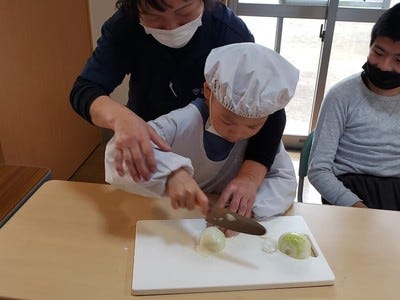 調理実習ではこども達が行うのを手伝って貰っています