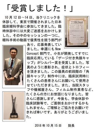 | 事業内容 | 眼科診療全般ですが、特に手術治療に力を入れています。斜視や眼瞼下垂(まぶたが下がった)、眼瞼腫瘍(イボなど)、さかまつげ(ふたえにすることも)などの外眼手術のみでなく、白内障手術、緑内障手術、硝子体内注射などの内眼手術を主に日帰りで行っています。糖尿病網膜症や網膜剥離裂孔、緑内障などに対するレーザー手術も行っています。眼鏡処方やコンタクトレンズ診療も行います。ボトックスによる眼瞼けいれんの治療も行っています。正面玄関前の道路からバリアフリーにしていて、新生児から車椅子・超高齢者まで対応しています。また、院内にお薬を置いていますので、診療後に院外薬局に行く必要を無くしています。 |