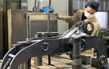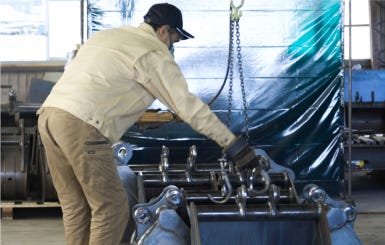 当社では、ショベルカー等の建設機械に使われるバケットをはじめとした