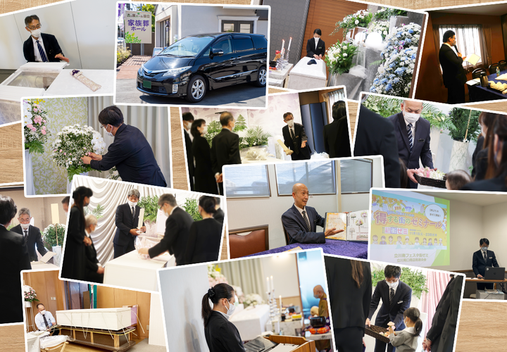 | 事業内容 | 各宗旨宗派の葬儀全般を請け負っており、2025年5月で創業46年を迎えます。 主に立川市、国立市、国分寺市、府中市、調布市、小金井市、三鷹市の方にご利用いただいております。 全日本葬祭業協同組合連合会(全葬連)実施の「サービス安心度調査2023」で最高のAAA評価をいただきました。 また葬祭業務を通して地域活動に貢献し、従業員の成長と幸福を追求しています。 葬儀会社として唯一、エコアクション21の認証登録を行なっており、人にも地域にも環境にもやさしい企業を目指しています。 そのほか、 ・健康優良企業 銀の認定 ・健康経営優良法人2023認定 ・働き方改革宣言企業 働き方の改善に全社で取り組んでいます。 またYouTubeチャンネルやブログ、SNSより情報を発信しています。 |