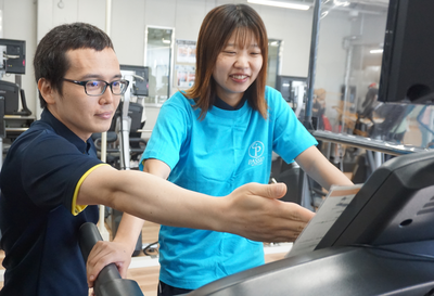スポーツジムをご利用のお客様に操作方法等をアドバイスしています。