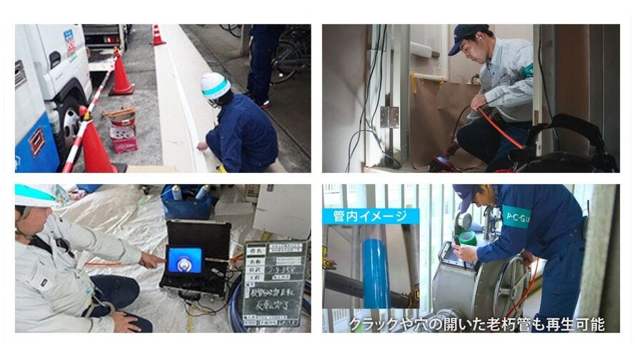 | 事業内容 | 1. P・C・G協会工法開発およびライセンス業務、P・C・G協会の運営 2. 特許工法、審査証明技術による配管更生および配管の耐震ライニング 3. 配管設備工事およびマンション配管設備の大規模修繕工事 4. ビル・マンション配管の定期洗浄と定期点検、緊急サービス等 <給排水管の更生工事の必要性・事業の将来性> 鉄管・鋳鉄管・銅管などの金属製パイプは、寿命が20~30年程度と言われており、メンテナンスをしないと、水漏れ、蛇口から赤っぽい色の水が出る、異臭などが発生する可能性があります。安全な水の供給、暮らしのインフラに関わる事業の為、今後もニーズがなくなる事はありません。 さらに弊社は特許を12個保有しており、商品力の強さから問い合わせ対応による営業活動のみで新規開拓はしていません。マーケットで圧倒的に勝てる特許商材を保有している点が弊社の強みになっています。 |