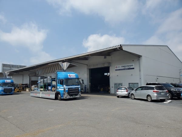 工場内で小型牽引車やフォークリフトを使用し