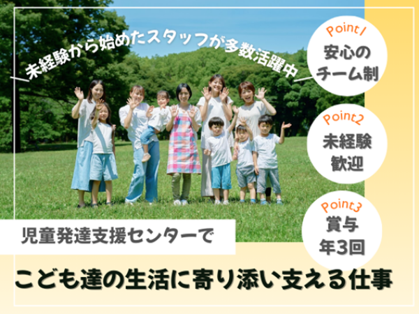 児童指導員 アルバイト募集! 【仕事内容】 発達に特性のあるお子さまたちが 安心して過ごせるよう、 見守りや療育支援を 行っていただきます。 …