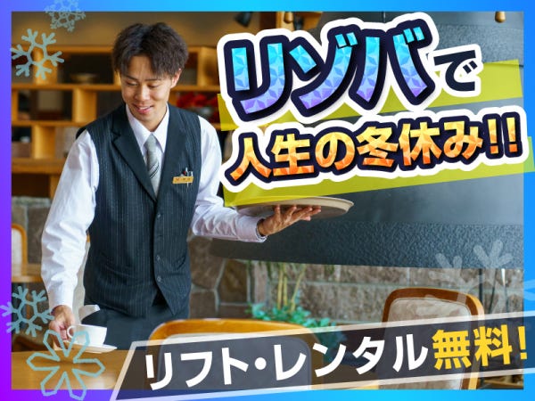 スキー場でのホテルレストランホール\12月~4月の期間限定リゾバ/✅面接は電話OK✅リフト券無料!