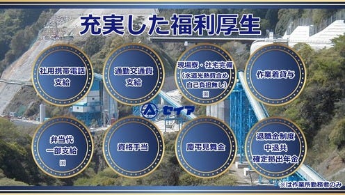 ・現場寮、社宅完備(水道光熱費含め自己負担無し)