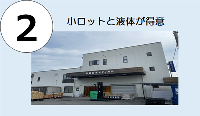 粉末・造粒加工、粉末充填(打錠、カプセル、三方分包、スティック分包、アルミジップ袋)、液体充填(三方分包・ビン)、包装(ボトル・ビン・化粧箱包装、シュリンク加工)