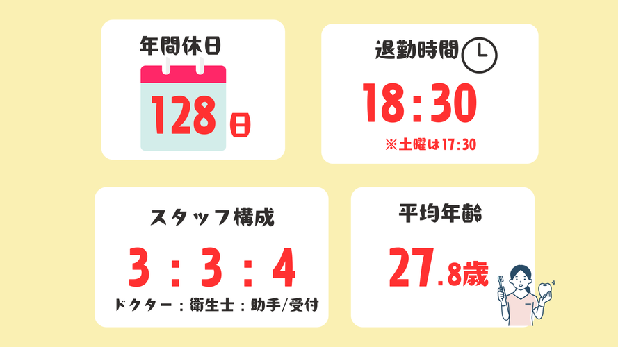 | 事業内容 | 予防とメインテナンスに注力する、地域に根ざした歯科医院です。 保険診療から自費診療に至るまで幅広い診療科目を扱っています。 患者様にご納得いただける診療を行うため、インフォームドコンセントを徹底。患者様お一人おひとりに合った治療法を提案しています。 院内は完全バリアフリー、駅近でアクセスしやすいこともあり、様々な地域から患者様がお越しになります。 常に新しい設備を導入するほか、衛生管理も徹底し、より高度な歯科医療の提供に努めています。 |