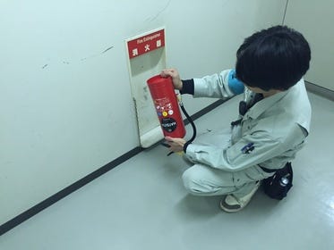 | 事業内容 | (1)消防設備の保守点検整備、改修工事及び新設工事等。消火器・火災報知機・誘導灯など正常に機能しているかの点検をします。また、不具合があった場合その修繕を行います。工事は火災報知機の設置が多いです。 (2)鳥類糞害防止器具 撃退ドットマンの設置 主に(1)を行っていただきますが、その他の現場も行くことがあります |