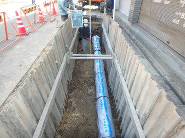 古くなった水道管を新しく耐震性の高い管に変えております。