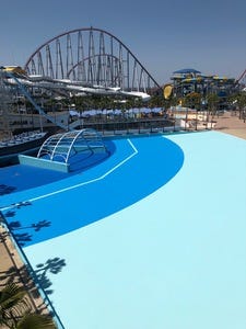長島ジャンボ海水プールは、鮮やかなブルーが特徴です。