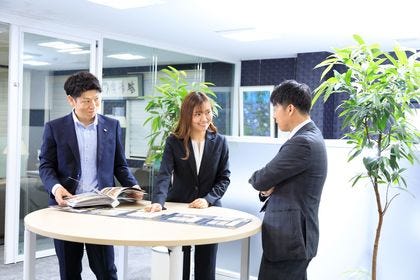 入社後は社会人としてのマナーや基本的な商品知識を学ぶところからスタート。座学にて基礎から指導しますので、未経験からでも安心して始められる環境です。その後は先輩社員に同行して、実際の業務の流れや配送先の場所を覚えたりと実地で勉強していきます。提案から施工まで自分の目で見て経験を積み、できることを増やしていきましょう。
