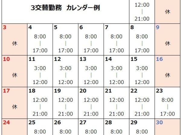 最低限週1日以上の休み、または4週間で4日以上の休日が取得できる
