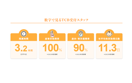 残業時間平均3.2h/月、産休育休取得率100%、年平均有休取得日数11.3日など、オフも大切に長期的に活躍できる環境です