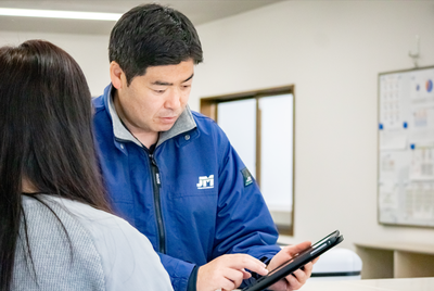 進捗管理やデータ保管システムを導入しており、タブレット端末で確認しながらの仕事も多いです。