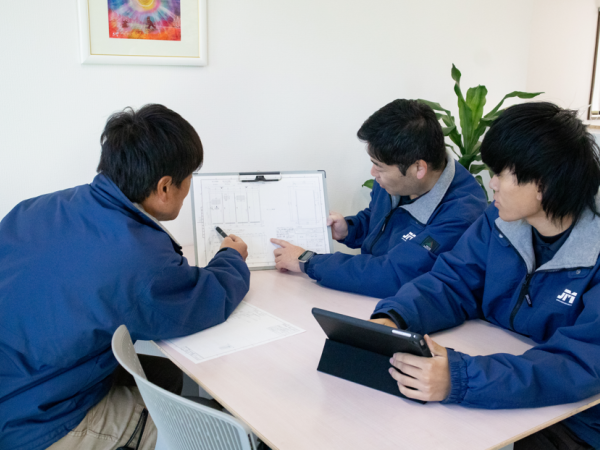 工事の際には先輩社員やベテラン社員と事前に確認しながら進めていきます。