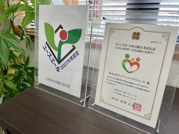 2023年にユースエール認定企業に認定、2021年にぎふし共育女性活躍企業に認定されました。2024年に認定継続中。