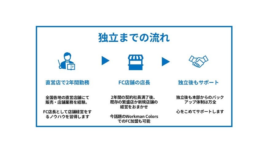 ◎契約社員期間は2年間。契約期間終了後、希望により双方合意の上でFCオーナーになっていただくことも可能です(要資本金)。