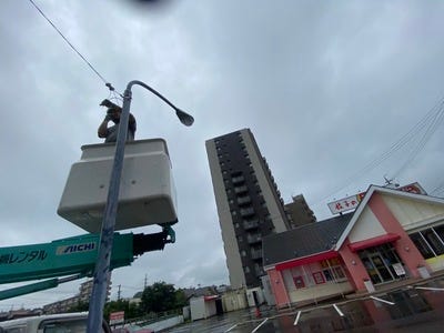 高所作業車による電気工事