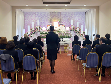 女性スタッフは、3時間という業務の中で、お客様によりそい心を尽くして「良い葬儀」を目指します。ご案内や司会進行が主な業務です。