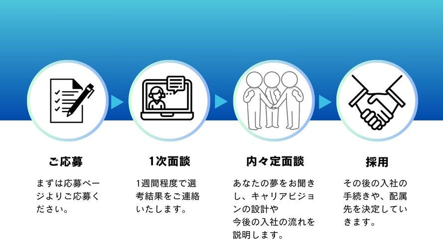●急募のため、内定までの期間は2週間以内を予定しています