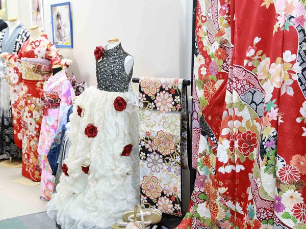 ◎取り扱う商品について 振袖、卒業袴、七五三、お宮参り、ブライダル等、人生のお祝いの節目に着用する衣装 を常時250~300点ほど展開。