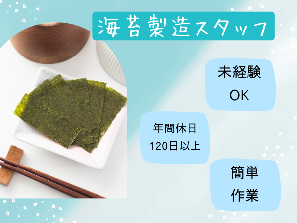 人物重視の採用未経験から挑戦できる!海苔工場での製造・加工スタッフ!