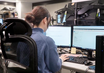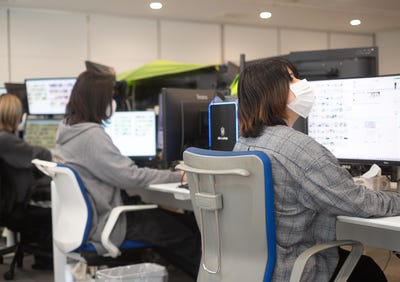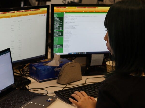 カスタマー対応の様子です。スタッフ毎にやりやすいスタイルで業務してもらってます!このスタッフは3画面で対応していますね!