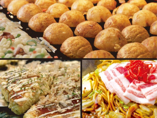 ■じゃんぼ總本店:庶⺠の食文化であるため、分かりやすいメニュー構成(たこ焼・お好み焼・焼そば)に加え、低価格帯の日常食として定着。