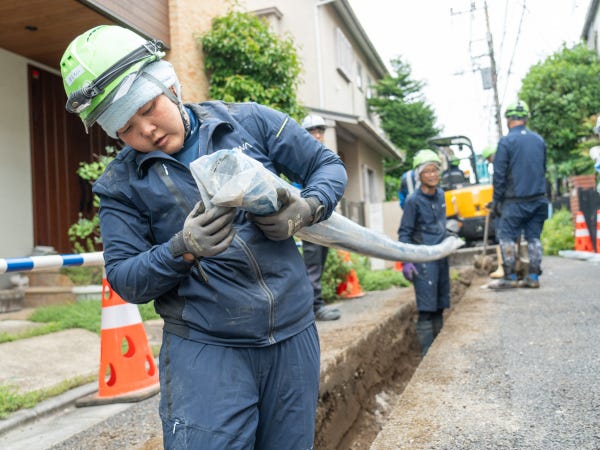 お任せするのは、東京都内の上下水道の耐震補強工事です。8人1組のチームになり、老朽化した管路の修復やつまりの除去などを行ないます。