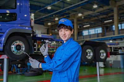 バスやタクシー、トラックなどの働くクルマを整備します。トレーラーや特殊車両を扱うこともあるため、普通は体験できない整備ができますよ!(※取扱車種は配属先によって異なることがあります)