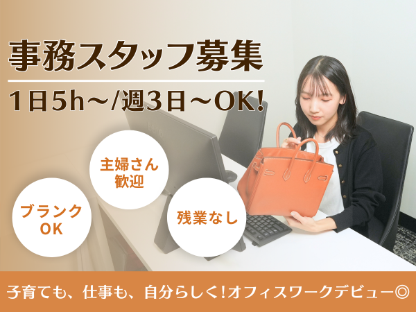 人気のブランドリユース業界で、家庭と両立しながらオフィスワークデビューしませんか?