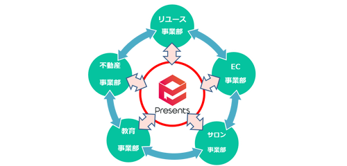 | 事業内容 | ・リユース事業 ・教育事業 ・EC事業 ・サロン事業 《プレゼンツについて》 株式会社プレゼンツは、リユース事業、教育事業、EC事業、サロン事業、不動産事業など様々な事業を展開しており、事業を通じありがとうが溢れる社会を創造することを使命としております。 社名の由来は3つの想い。 【プレゼント】誰もが好きなもの。喜びや感謝を与えられる会社にする。 【PRESENTS】沢山の方々に関わり、多くの機会で与えられる会社にする。 【プレ善】前もって“よし”とする。良い行いができる組織・会社にする。 これからも、地域密着型企業としてより良い社会を築くために、さまざまな事業領域で成長し続けます。 お客様や地域の皆様とともに、共に歩み、より良い未来の実現に貢献していきたいと思っております。 この三河から一緒に行動を起こしませんか? |