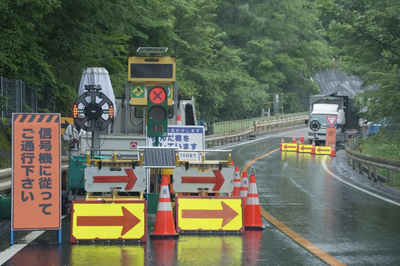 ・歩道上の工事中に、歩行者を安全なルートへご案内