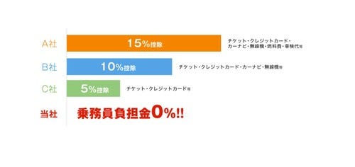 エリアにより異なりますが、最長で6ヶ月・合計180万円の保証制度を用意。また、同業界ですと6~7割がカーナビや無線などの車両機器手数料を給与から控除します。しかし当社は、一切控除が無く稼いだ分をそのまま売上として受け取る事が出来ます。